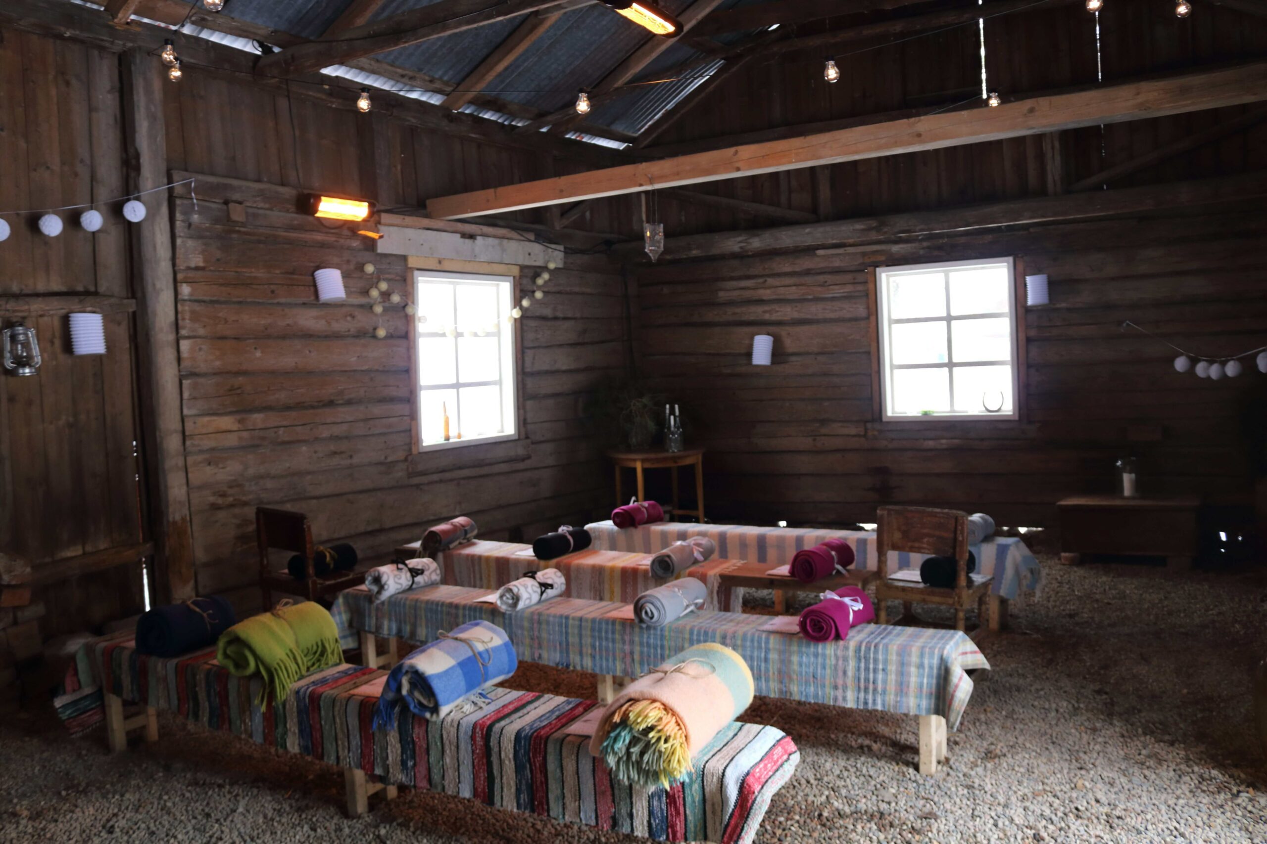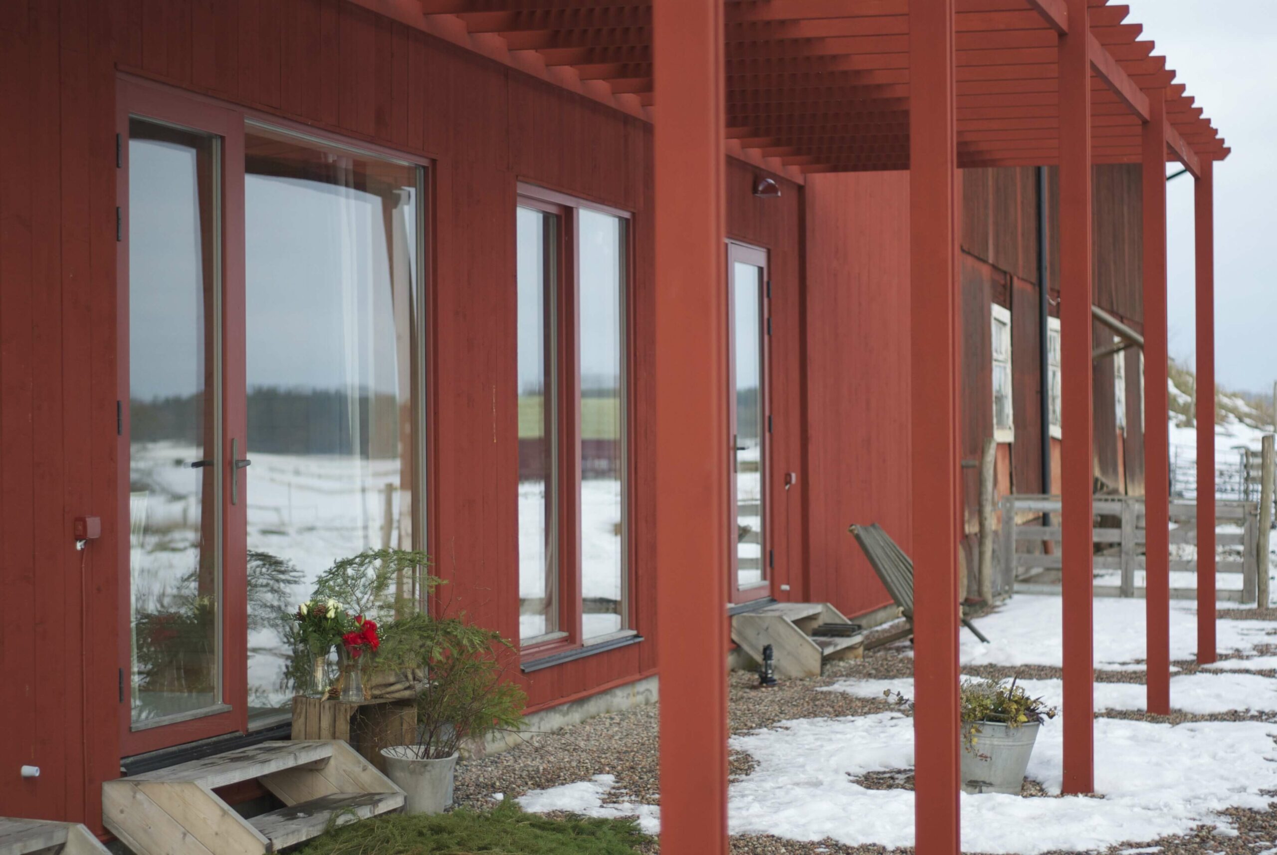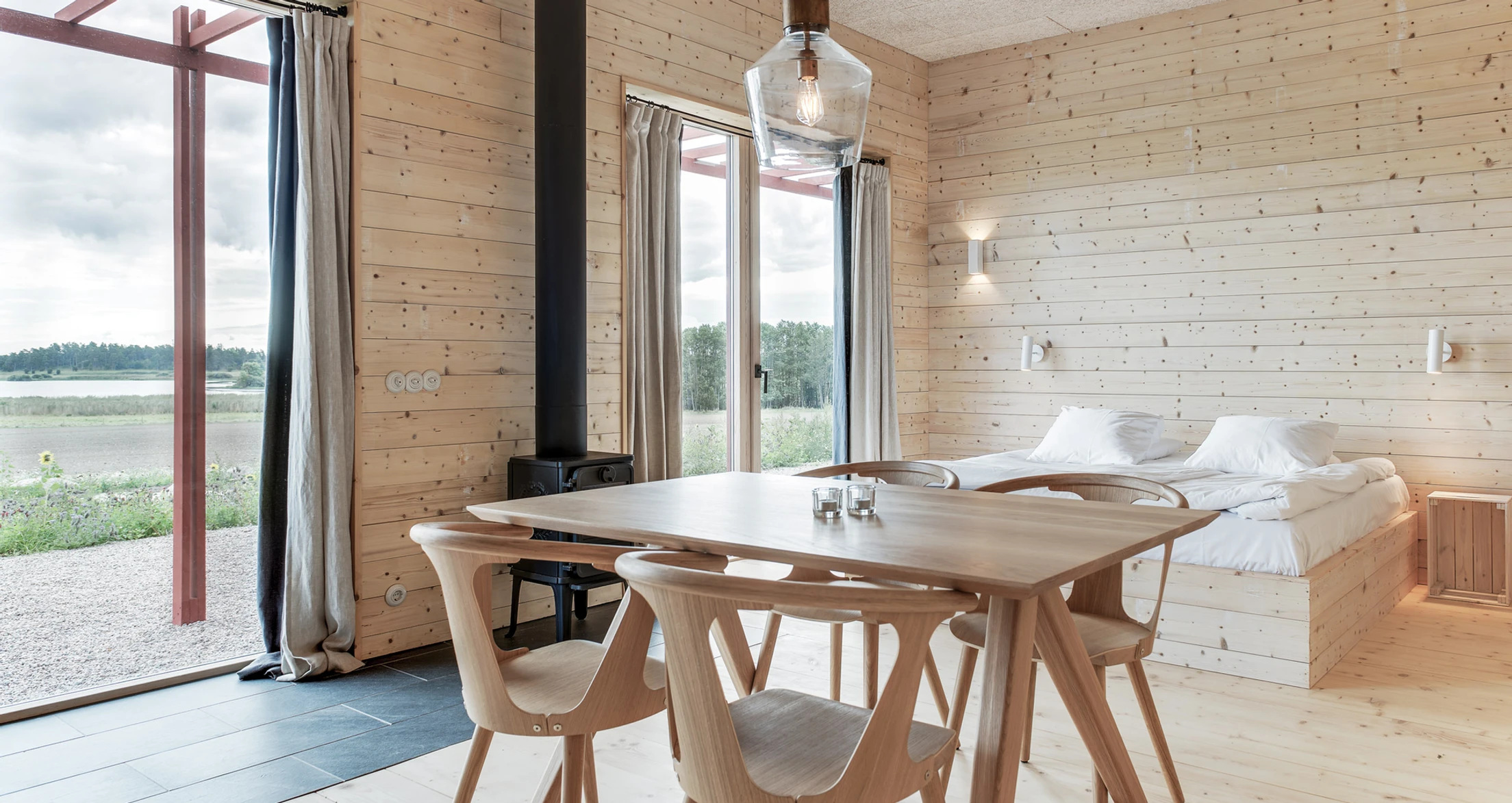 Far away from everyday life, but only a 15 minute drive from Skavsta airport and one hour from Stockholm. But most of all…close to nature, beyond sustainable and with a modern and natural design fitting the environment. And lucky us, it provided exactly enough space to house our 15 guests. At the center of the farm is the Eco Barn, a hundred year old barn renovated to perfection. It offers two Eco Suites (up to 4 people) and one double room (2 people) with large glass windows overlooking the nearby lake and forest. On a small hill at the forest edge lies a typical Swedish Red Cottage which can house another 5 guests. You wake up to the sound of sheep in the next door barn, and perhaps you will even spot a hare or deer when you open the curtains in the morning.